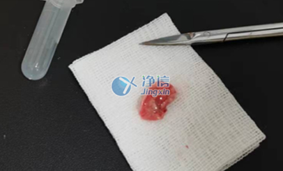 2、將解凍的肺組織樣品,剪成黃豆粒大小的碎塊